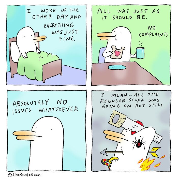 Benton started posting comics on Instagram in 2018, and the series has since amassed over 51,400 followers. Benton’s Shots have been praised for their wit, creativity, and ability to make people laugh. Whether it’s the trials and tribulations of friendships, the quirks of technology, or the peculiarities of family life, his characters navigate these scenarios with a dose of wit and absurdity. If you are looking for a laugh or a reminder that the world is not such a bad place after all, Benton’s comics are sure to make you feel good and warm your heart.