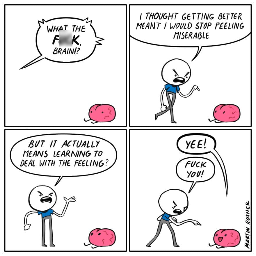 From most of his comics, he tells the audience try to be open about depression, he knows it always helps to know that you’re not the only one struggling. His main focus to tell the people how to develop skill to overcome on anxieties. We have compile some of his illustrations in the gallery below. Hope every one will enjoy these comics.
