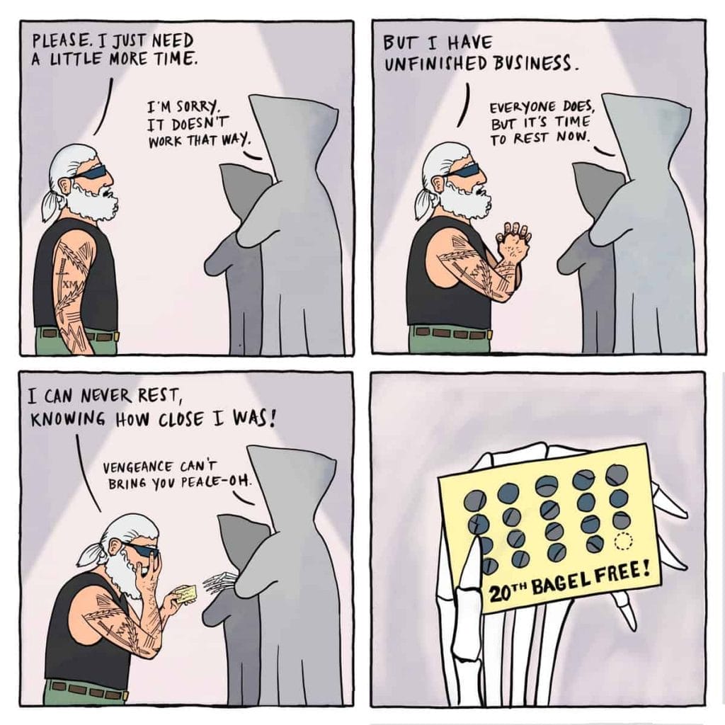 Grim and Graham Comics have gained a following of 9,753 on Instagram, where their work is shared and enjoyed by fans. The comics showcase the unique artistic style and storytelling of Graham Millar, who has a background in comix art. The comics often resonate with audiences, capturing relatable moments and adding a touch of humor. His self-publishing journey and the success of Grim and Graham Comics demonstrate his talent and dedication to his craft. So, the next time you find yourself facing an ordinary situation that could use a twist, remember Grim and Graham Reaper Comics—a delightful blend of humor, humanity, and the afterlife that reminds us all to savor life’s journey, wherever it may lead.