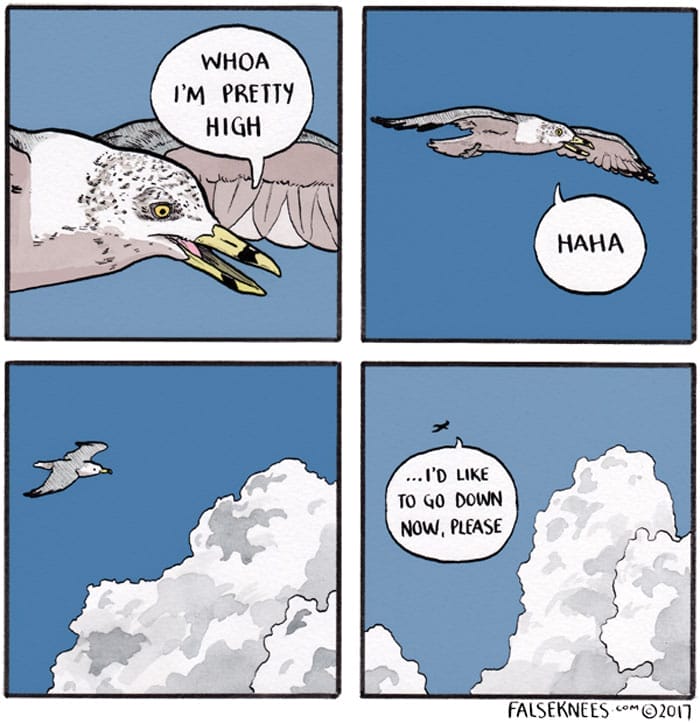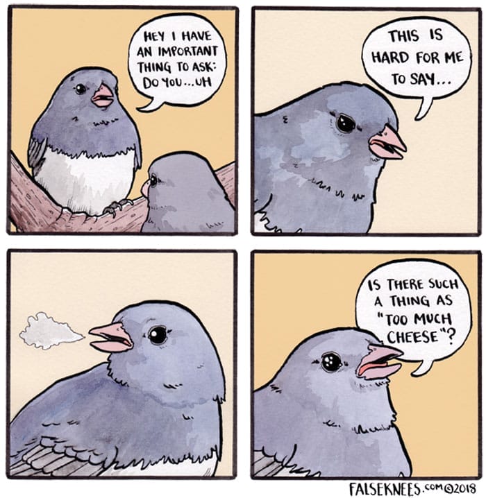 Joshua Barkman’s keen observation of wildlife is evident in each comic, as he often personifies animals and imbues them with human-like qualities, leading to hilarious and relatable scenarios. The witty dialogue and clever captions add an extra layer of humor and depth to the already delightful visuals. False Knees has garnered a dedicated following of 732,000 due to its originality, charm, and insightful commentary on life, nature, and the human condition. The webcomic’s ability to find humor and wisdom in the simplicity of everyday interactions between animals has made it a beloved and entertaining webcomic for readers of all ages. You can check out his recent 20 illustrations in the next section.