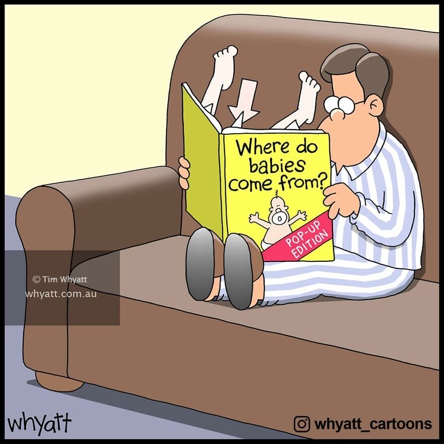 Tim Whyatt’s expertise lies in the art of delivering punchlines with surgical precision. Through his single-panel cartoons, he encapsulates a hilarious story or clever observation, leaving readers chuckling and nodding in agreement. With a perfect blend of relatable humor and sharp wit, Whyatt’s cartoons effortlessly find humor in the simplest of life’s situations. With 68,000 Facebook followers and counting, Tim Whyatt has undoubtedly won the hearts of a vast and ever-growing fanbase.