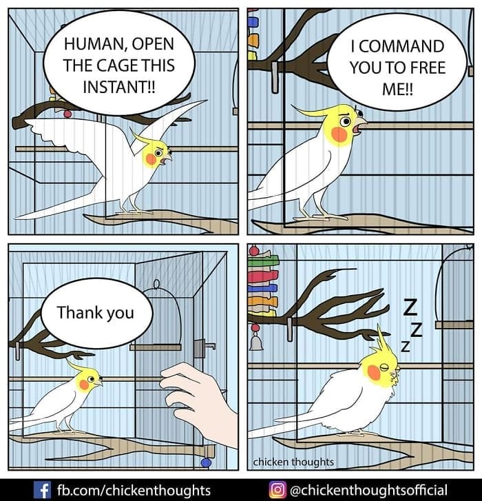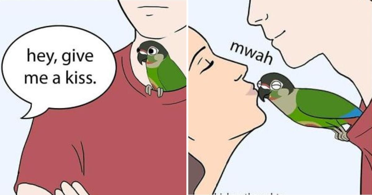 Sarah makes comics because she is a big fan of comedy and memes, and that is certainly what you can get from her work. They are cheerful and confident. The comics are by no means superficial. On the other hand,they perfectly capture all the nuances of living with parrots and their behavior. Scroll down the following section to enjoy these comics.