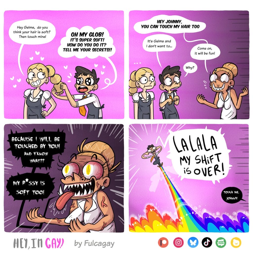 Heyimgay.comic, also known as Fulcagay, is an Instagram artist who uses their platform to celebrate LGBTQ+ art and identity. With a growing following of 22,400, Fulcagay’s unique and vibrant artwork has captured the attention of many on Instagram. Fulcagay’s artwork is a powerful expression of LGBTQ+ experiences, challenges, and triumphs. Through colorful illustrations and relatable comic strips, they explore themes of self-acceptance, coming out, and the LGBTQ+ community’s diverse experiences.