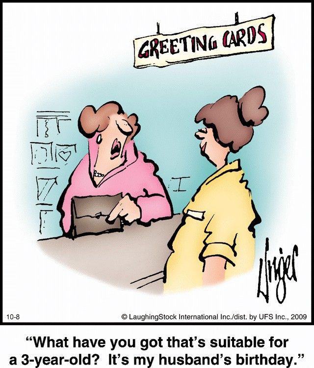 A wife asks for a birthday card for a three-year-old—except it’s for her husband. Proof that growing older doesn’t always mean growing up.