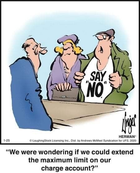 Nothing kills a credit request faster than bringing a friend in a “SAY NO” T-shirt. Brutal honesty stitched in cotton.