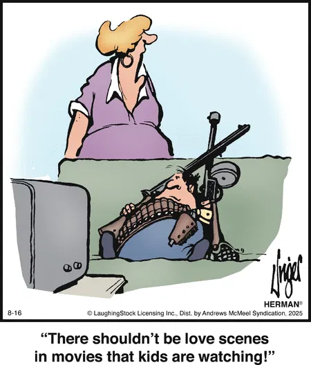 Parents panic over romance in movies but hand the kids a front-row seat to explosions. Wholesome priorities, Herman style.