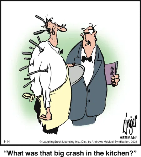 The classic bandage dilemma gets a Herman twist. A doctor casually holding a scalpel asks a patient if they want the wound treated “fast or slow.” The tension between implied pain and cartoon absurdity makes this panel unforgettable. You’ll laugh, cringe, and suddenly be grateful for anesthetics.