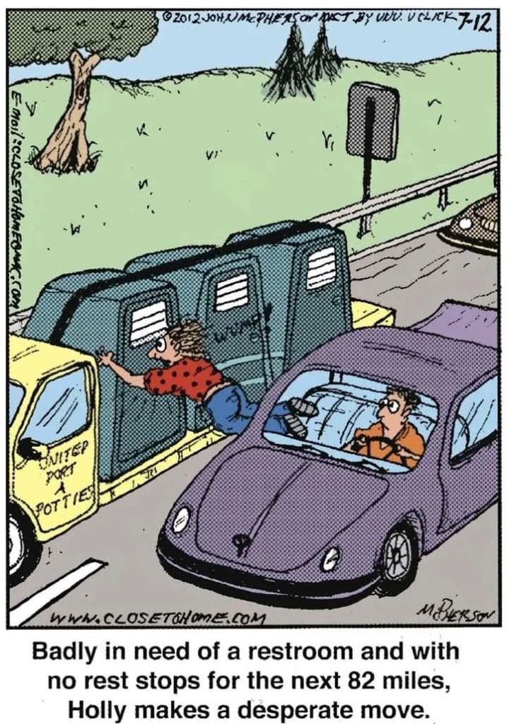 No rest stops for 82 miles? No problem. Just leap into a porta-potty on a moving truck. Holly’s bold move earns her a gold medal in bathroom emergencies—and comic timing.