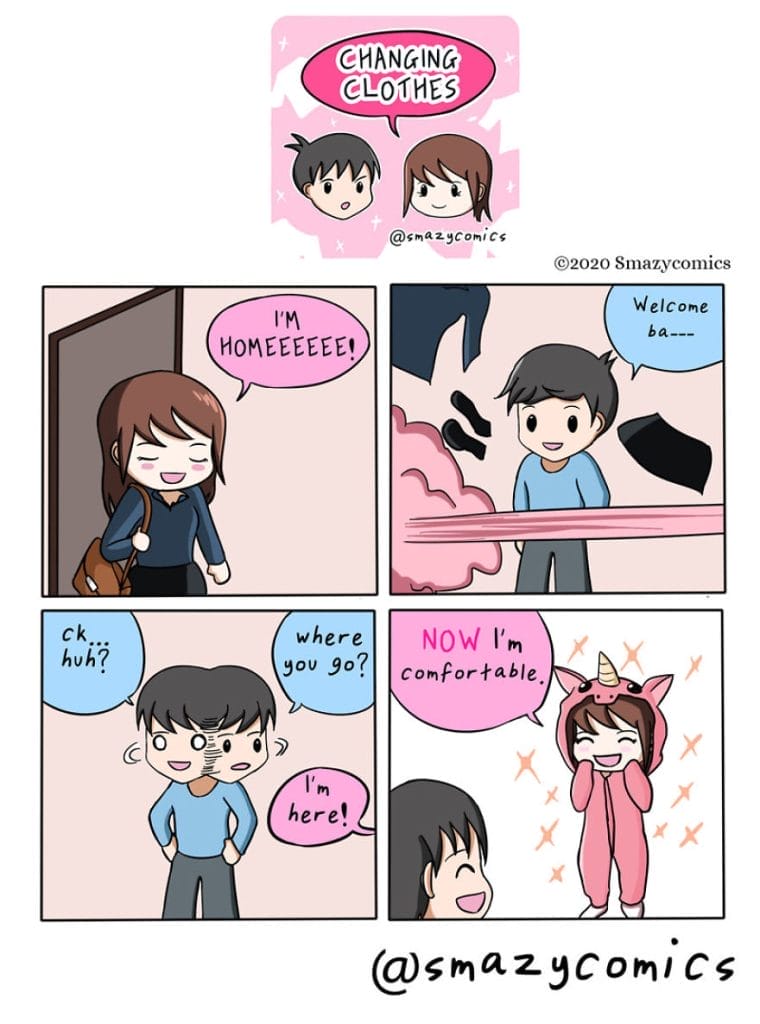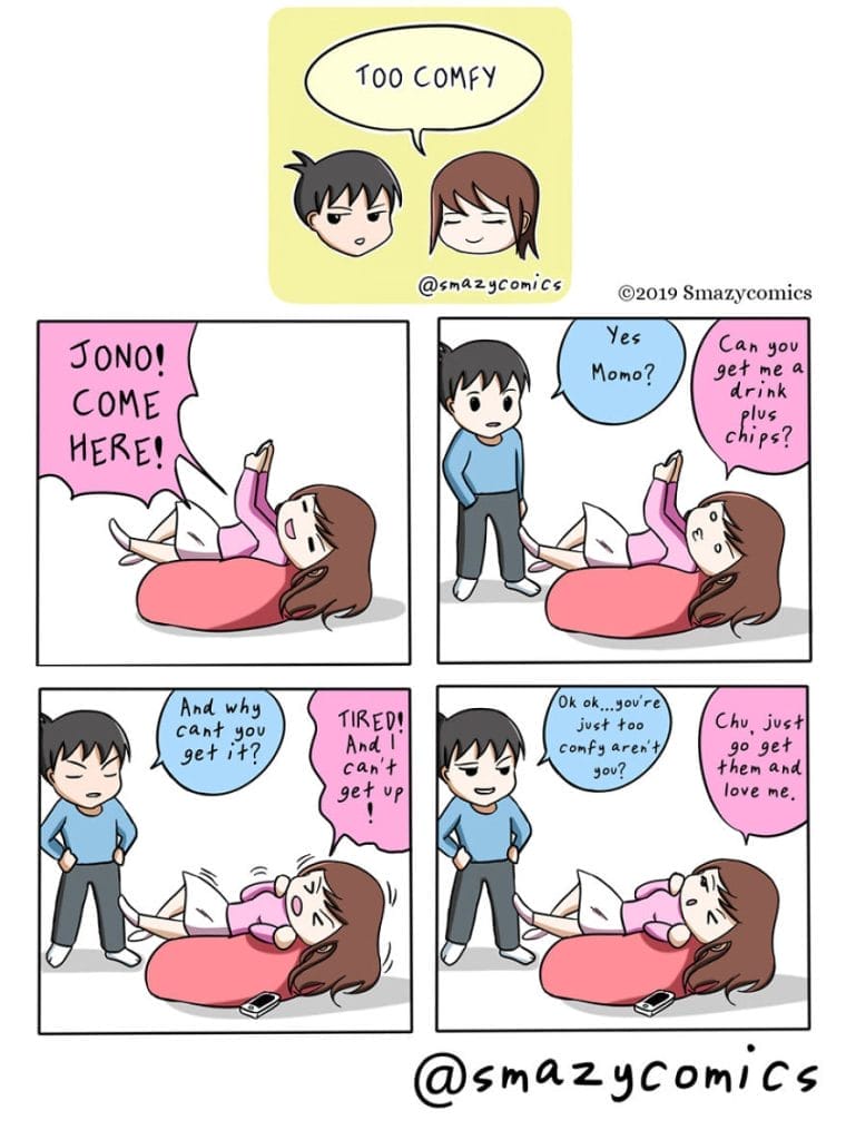 Smazy Comics is an ongoing, free-to-read webcomic that has been in the works since November 2019. It follows the adventures of a couple, Jono and Momo, who call themselves the “Smazy” couple (Smart and Lazy). The comic is known for its humor, its relatability, and its heartwarming moments. We have compiled their best 20 illustrations in the next sections. Scroll down and enjoy the comics.