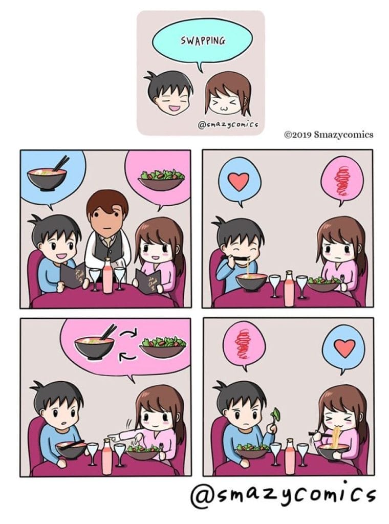 Smazy Comics has an Instagram account where they post their comics. They currently have an audience of 29,600 on their Instagram account. What makes this couple so captivating is the delightful interplay between their personalities. One is typically portrayed as the “smart” half, quick-witted and full of clever ideas, while the other embodies the “lazy” persona, often seeking the path of least resistance. This dynamic leads to an array of humorous situations, but it’s their unwavering love and the moments of tenderness that truly shine.