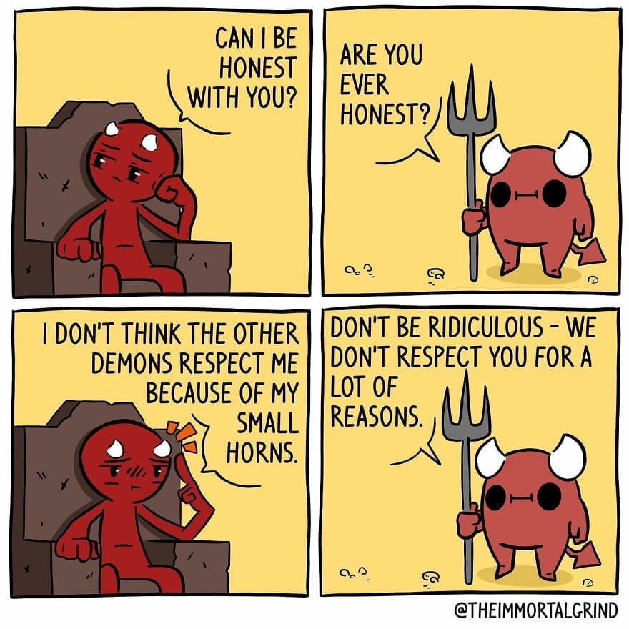 Death is defined as the act of passing away, the end of life, or the permanent destruction of something. We are here to discuss about a webcomic series that is “Immortal Grind”. The master mind behind this creative webcomic series is “Burly”. This artist makes comics on death and the life after the death.As written in his bio, “Chronicling the daily life of the afterlife”.