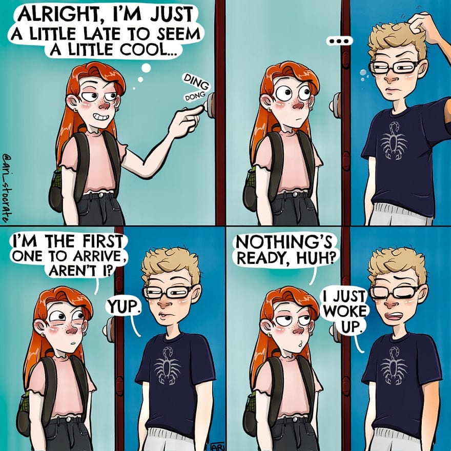 The comics often deal with difficult topics such as anxiety, depression, and self-doubt. But they always do so in a way that is both funny and heartwarming. Sally and Bean’s friendship is a reminder that even when things are tough, we are never alone. Sally and Bean is a popular webcomic with over 140,000 followers on Instagram. Stocrate is a talented artist with a gift for creating relatable and heartwarming characters. Sally and Bean is a must-read for fans of webcomics and anyone who loves a good story about friendship. We have compiled her best illustrations in the next section. If you want to enjoy these comics, then take a cup of coffee and scroll down to the section below.