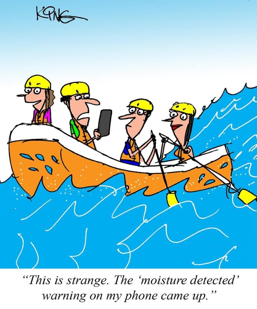 Rowing, phones, and water don’t mix—but they make for classic Jerry King slapstick.