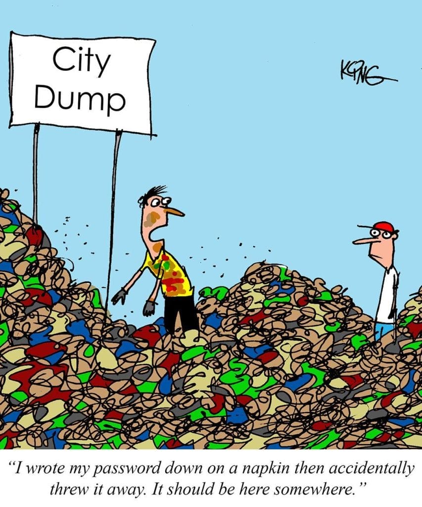 A 21st-century tragedy: lost passwords, lost napkins, and the city dump.