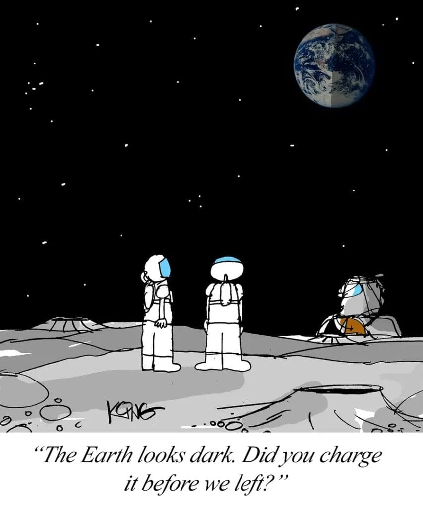 For everyone who’s ever panicked over a dead phone, this cosmic joke brings universal laughs.