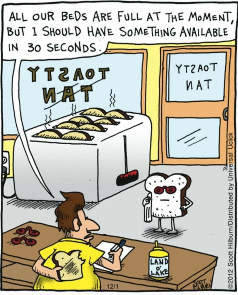 Sunbeds for bread? With sunglasses and all? It’s golden-brown absurd humor served fresh.