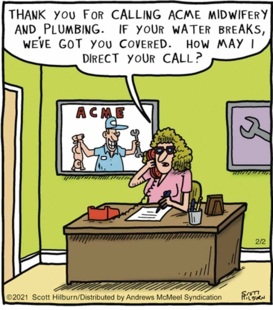 If your water breaks, who better to call than ACME Plumbing? Surreal workplace mashups at their funniest.