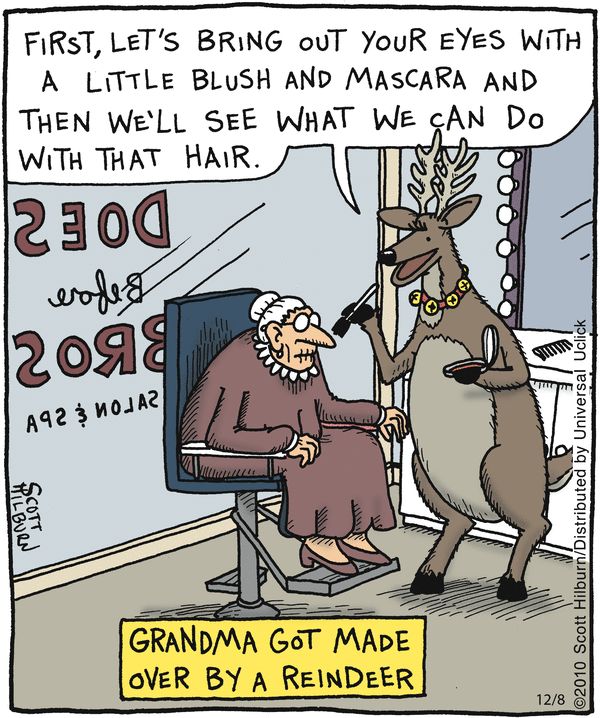 Santa’s crew branching out into beauty services? Utterly absurd—and grandma’s not sure whether to be flattered or horrified.