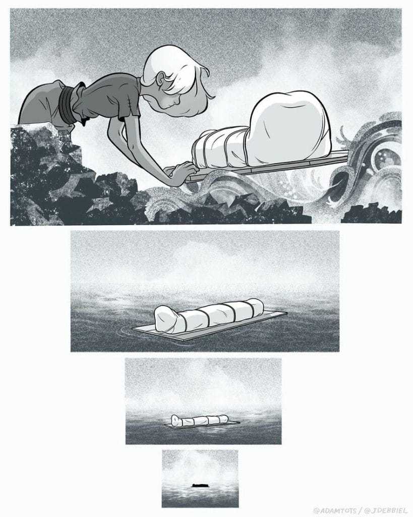 In addition to his horror-themed comics, Adam has created numerous pieces that touch on various subjects, often with unexpected twists. His work has been featured on platforms like Bored Panda, highlighting his versatility in addressing topics from social issues to personal anecdotes. citeturn0search6