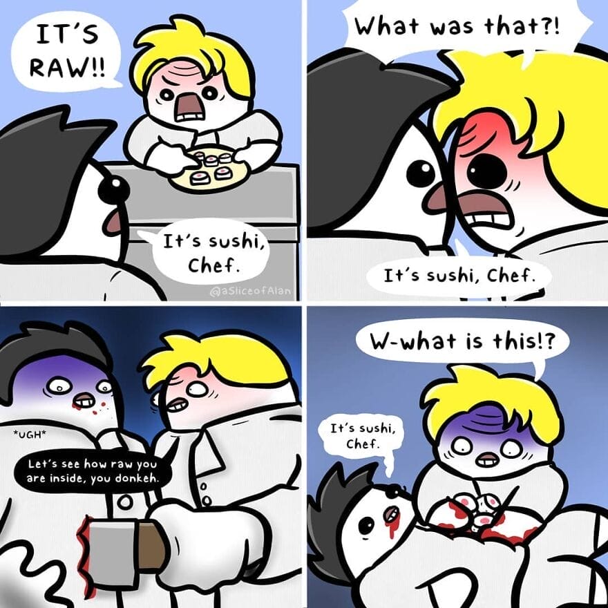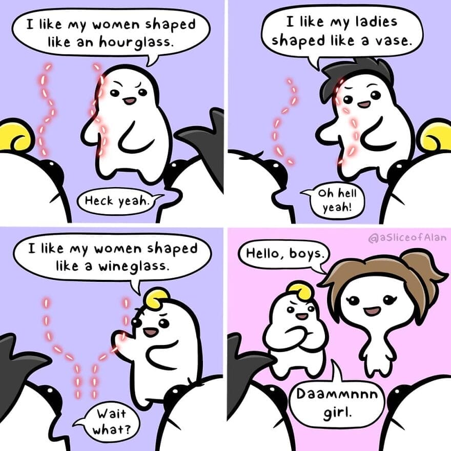 Slice-of-life humor comics draw their comedic essence from the mundane situations and interactions that make up our daily lives. Whether it’s navigating the complexities of relationships, dealing with everyday mishaps, or poking fun at societal norms, these comics provide a fresh and humorous perspective on the human experience. His comics often deal with topics such as relationships, work, and everyday life. He also has a dark and raunchy sense of humor, which he often incorporates into his comics. If you’re looking for funny and relatable comics, then you should definitely check out A Slice of Alan Comics. His comics are sure to put a smile on your face.