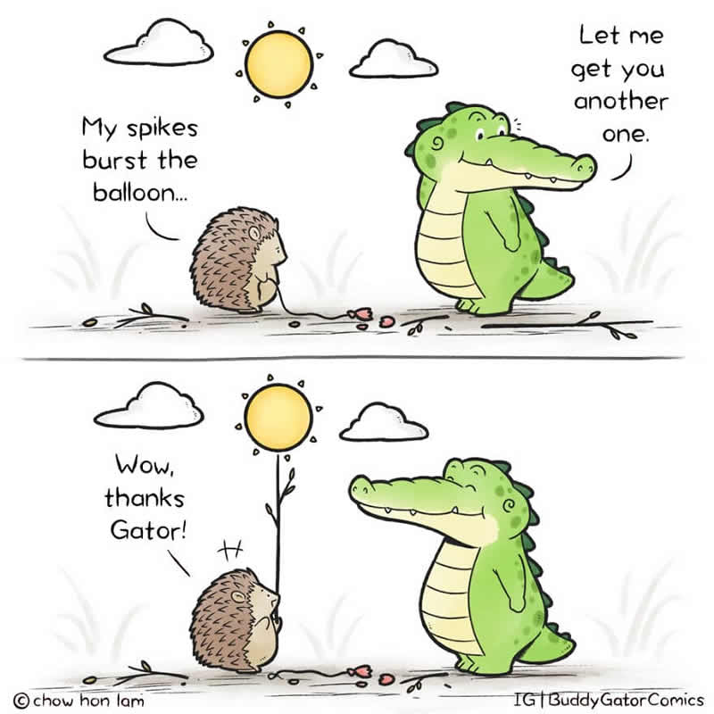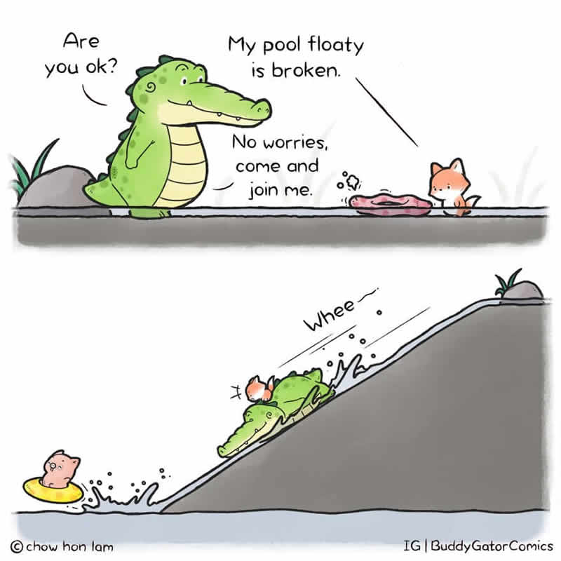 I’ve created some adorable alligator comics called “Buddy Gator” to share positive vibes. Some of us are having a hard time now, but I think that as long as we have someone by our side, everything will work out.