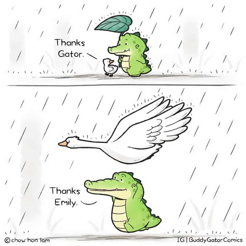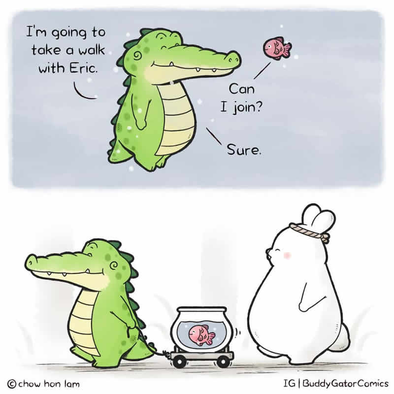 I’ve created some adorable alligator comics called “Buddy Gator” to share positive vibes. Some of us are having a hard time now, but I think that as long as we have someone by our side, everything will work out.