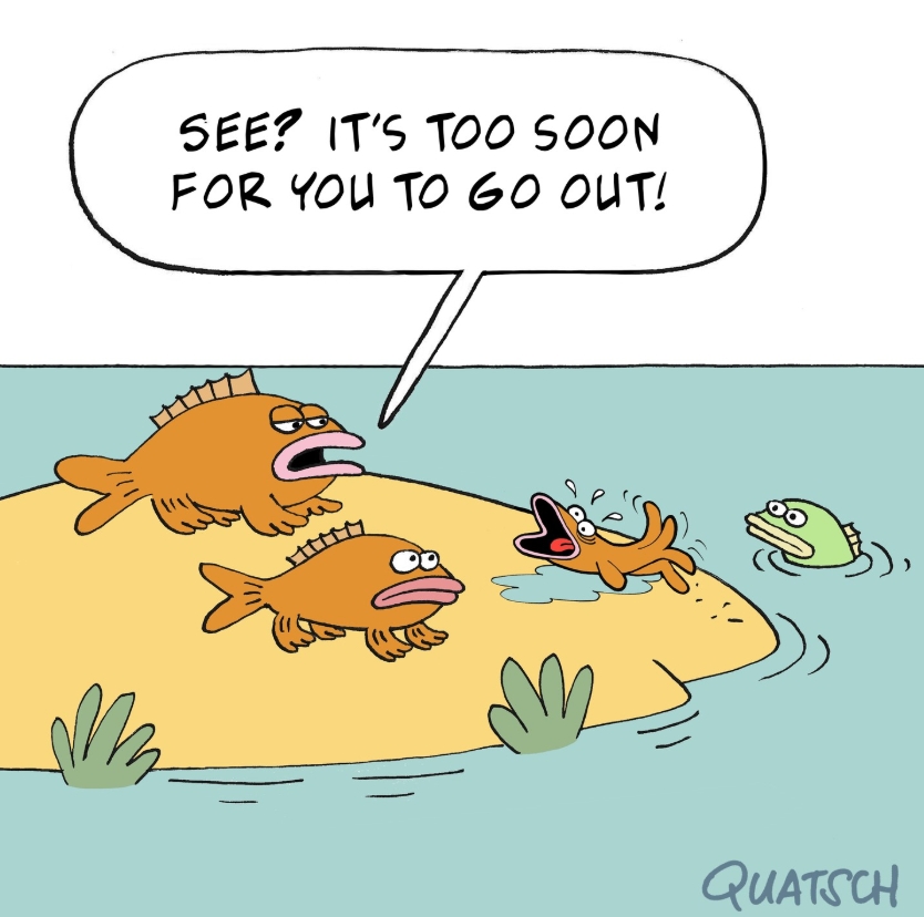 Fish parenting reaches new extremes as a rebellious fry attempt to evolve. The punchline swims circles around Darwinism in the funniest possible way.