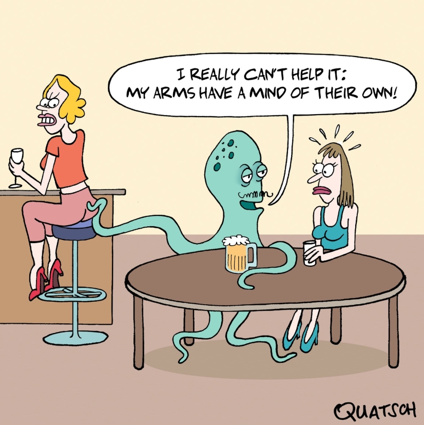 This octopus has a unique problem — his arms can’t keep to themselves. A delightfully awkward cartoon about personal space, pickup fails, and alien bar etiquette.
