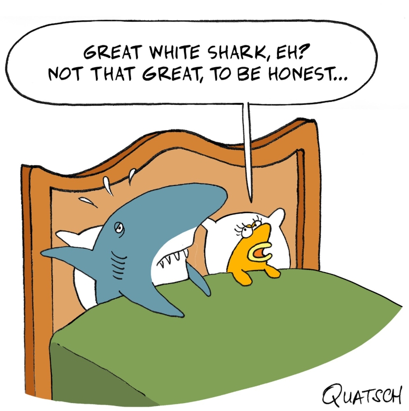 In the world of fishy pillow talk, the “great white shark” reputation just doesn’t hold up. A hilarious dive into dating disappointment in the underwater world.