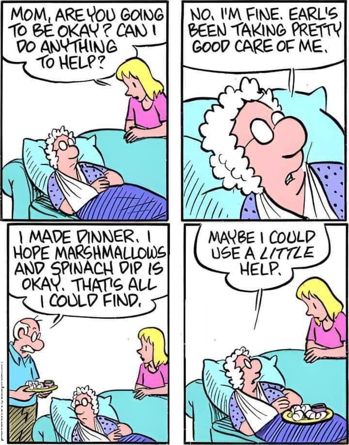 Earl’s idea of a meal: marshmallows and spinach dip. Sometimes Opal’s patience is the only thing keeping this family alive.