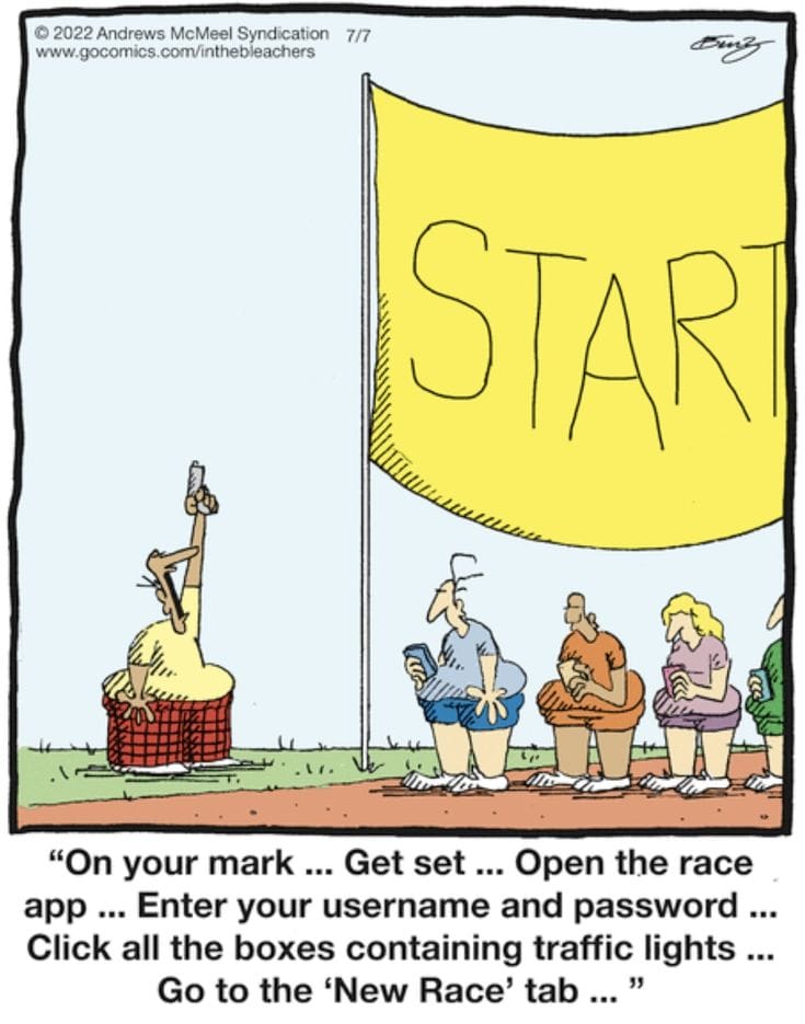 Modern life meets sports. Nothing like a marathon that requires a CAPTCHA just to start running!