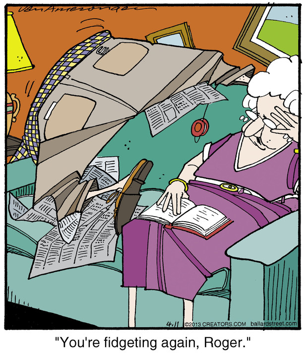 Roger’s restlessness is next-level. If you’ve ever tried to chill while your partner turns “sitting” into an Olympic sport, this panel will hit home. Reading on the couch? In this house, it’s a full-contact sport.