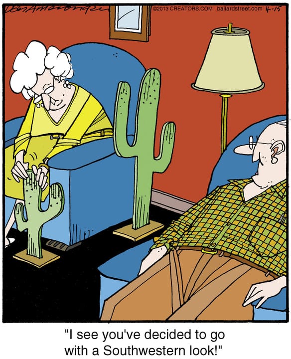 Home décor gets a prickly update when cacti replace throw pillows. This hilarious snapshot of married life will have anyone with a design-obsessed spouse nodding (and laughing) in agreement.