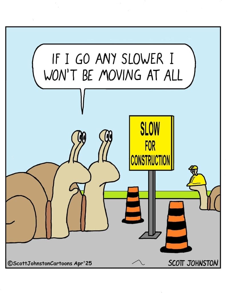 When “slow for construction” gets applied literally to snails, comedy crawls in at the perfect pace.