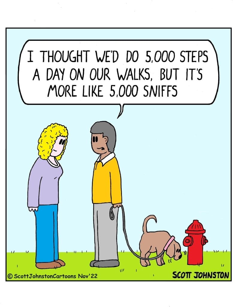 Dog owners know this pain: walks that last forever thanks to sniff-every-hydrant syndrome. Relatable and hilarious.