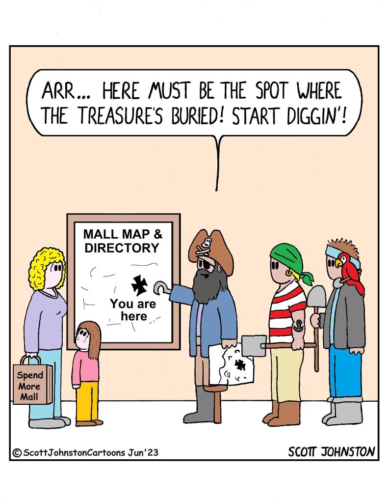 A crew mistakes a mall directory for buried treasure. Retail meets adventure — and wins.