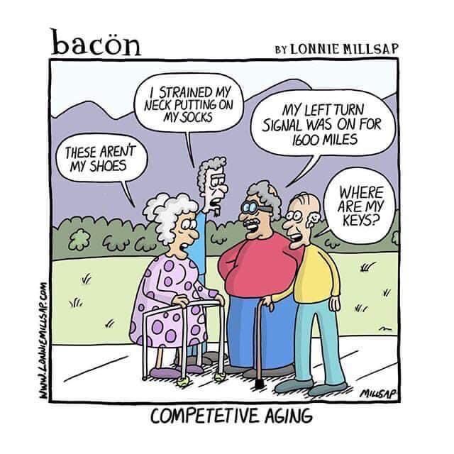 Getting old is a sport in this panel. From mysterious shoes to lost keys and record-breaking turn signals, Millsap lovingly pokes fun at the quirks of growing older. It’s a reminder that laughter really is the best medicine.
