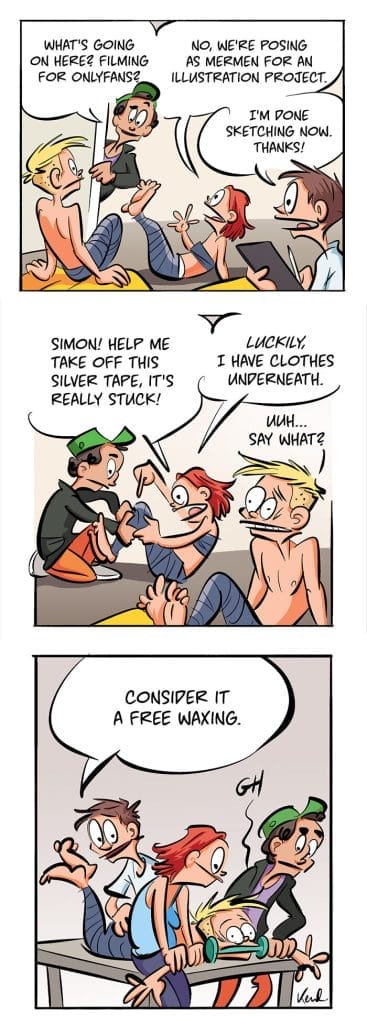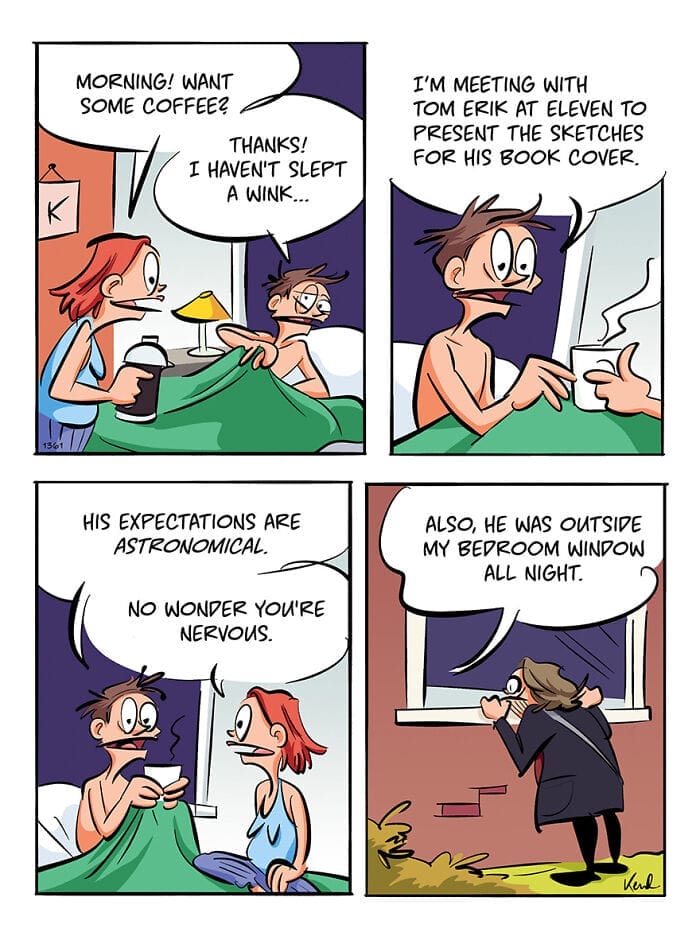 Before taking the plunge into his dream of becoming a full-time comic artist Kenneth studied graphic design and spent several years working in advertising in Stockholm Sweden. Today, he calls Stockholm home although his freelance career allows him to travel frequently and continue creating. Through it all he’s remained close to his best friend Marthe with whom he’s shared nearly four decades of hilarious and chaotic adventures. Their friendship serves as the inspiration for Bestie which has gained a massive following and even expanded into a published book.