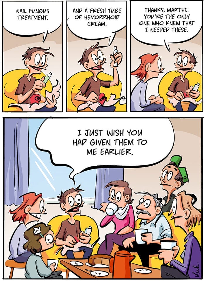 Kenneth Larsen’s Bestie comic beautifully illustrates the chaotic yet heartwarming nature of his friendship with his best friend, Martha. Their dynamic is full of playful pranks harmless betrayals and lots of laughter moments that are both relatable and incredibly amusing. It’s a bond that feels like siblinghood where comfort and mischief go hand in hand. In Bestie, Kenneth captures the humorous side of their life together showcasing the ups and downs of a friendship that’s lasted for years. Their antics, from lighthearted teasing to laugh-out-loud moments highlight the kind of friendship where no topic is off-limits and no one is safe from a prank. The comic has quickly found its audience amassing over 105K followers on Instagram and even expanding into a book. If you enjoy comics that bring the raw, funny side of friendships to life Bestie is one you’ll want to follow.