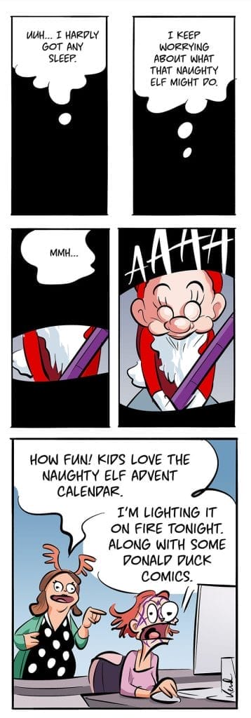 Kenneth Larsen, the artist behind the popular comic Bestie grew up in Trondheim, Norway, where he spent countless hours immersed in his passion for drawing. While his father attempted to steer him toward sports like soccer (an effort that didn’t quite succeed, as he humorously notes in his comics), Kenneth found his true calling in comics. He loved reading Donald Duck a Scandinavian favorite in the ’90s, as well as iconic newspaper strips like Ernie, Calvin and Hobbes, and Garfield.