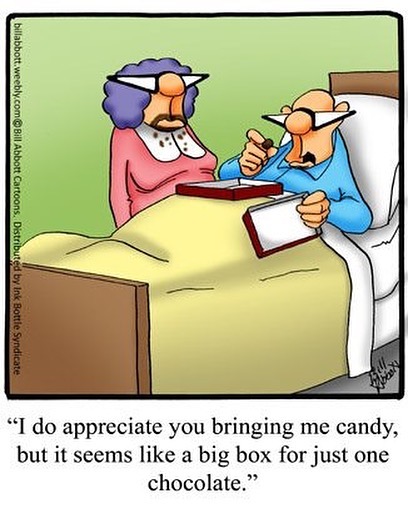 When your spouse brings you a massive box with just one chocolate inside, you know you’re married. The cartoon version of every relationship, ever.