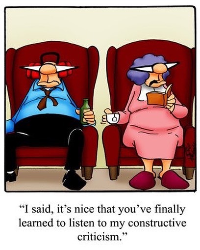 Years of marriage have finally paid off—he’s learned to “listen” to constructive criticism. Or at least, he nods while tuning it out. Married life, summed up.
