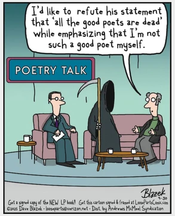 During a TV show called “Poetry Talk,” Death politely dunks on an aspiring poet. It’s bleak, hilarious, and full of sharp irony. Who knew the Grim Reaper was a fan of literary critique?