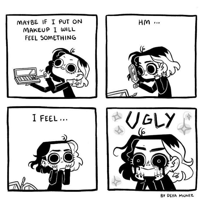 Deya Muniz is a Brazilian artist who has been working on her webcomic series, Brutally Honest, for five years. Her comics deal with the absurd realities of everyday life with brutal honesty and refreshing humor, offering precisely what we need to come to terms with the fact that we don’t always have our act together. The series is personal and based around stuff that happens to her in real life, and she puts her own thoughts and feelings out there. Brutally Honest has 141,000 followers on Instagram.