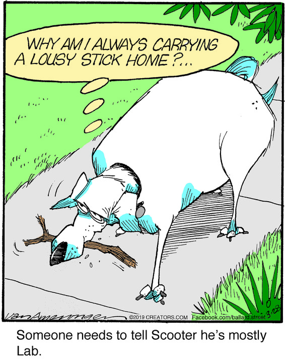 Scooter wonders why every walk ends with another lousy stick. It’s in the genes, buddy.