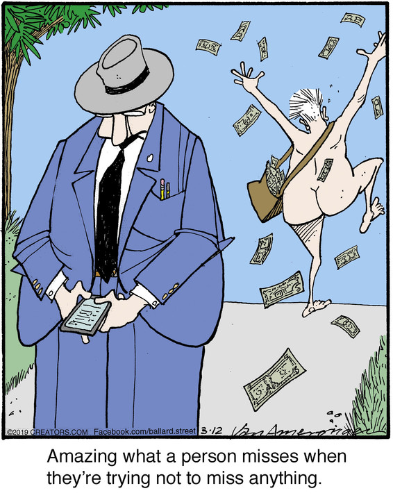 Sometimes what you miss while trying not to miss anything is… a naked guy making it rain.