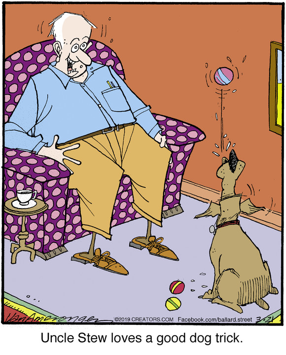 Uncle Stew loves a good trick—even if the dog’s the one running the show.