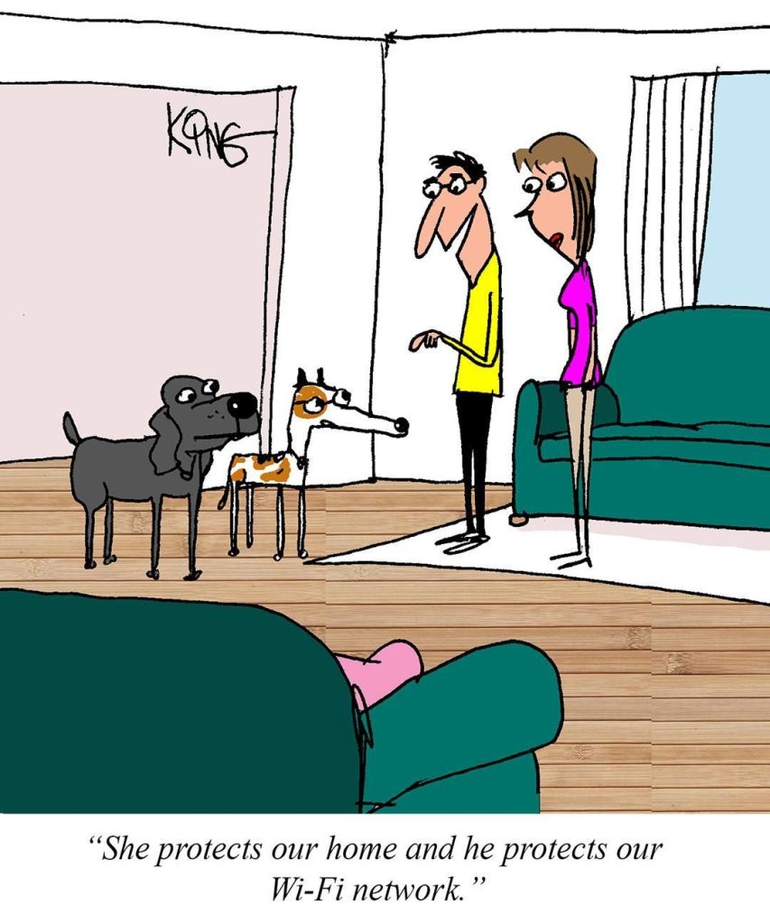 Even the pets have digital jobs! This comic is a spot-on snapshot of today’s tech-centric life.