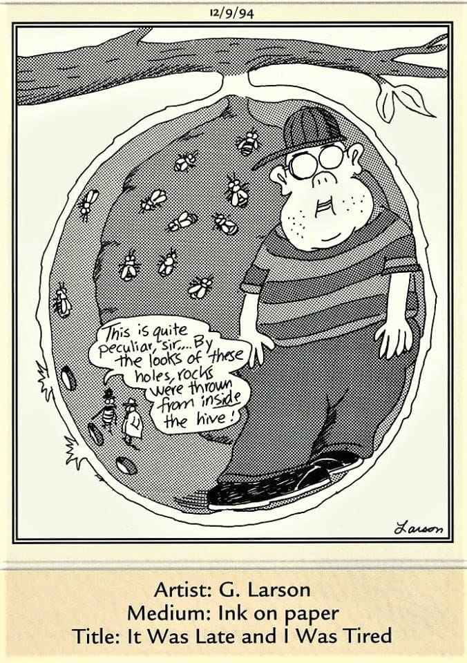 Inside a hive, investigators find evidence of “rocks thrown from inside.” It’s classic Larson — bugs behaving badly.