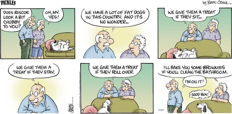 All comic panels reviewed are the work of award-winning cartoonist Brian Crane. See more of his daily family humor on his GoComics Pickles page. Crane’s warm and witty style has made “Pickles” a classic for a reason—don’t miss out!